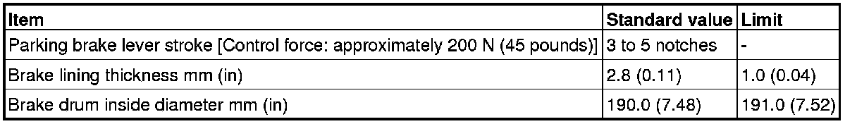 Parking Brake System: Specifications