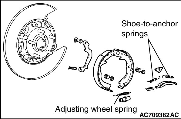 STEP 2. Check the shoe-to-anchor springs and adjusting wheel spring for breakage.