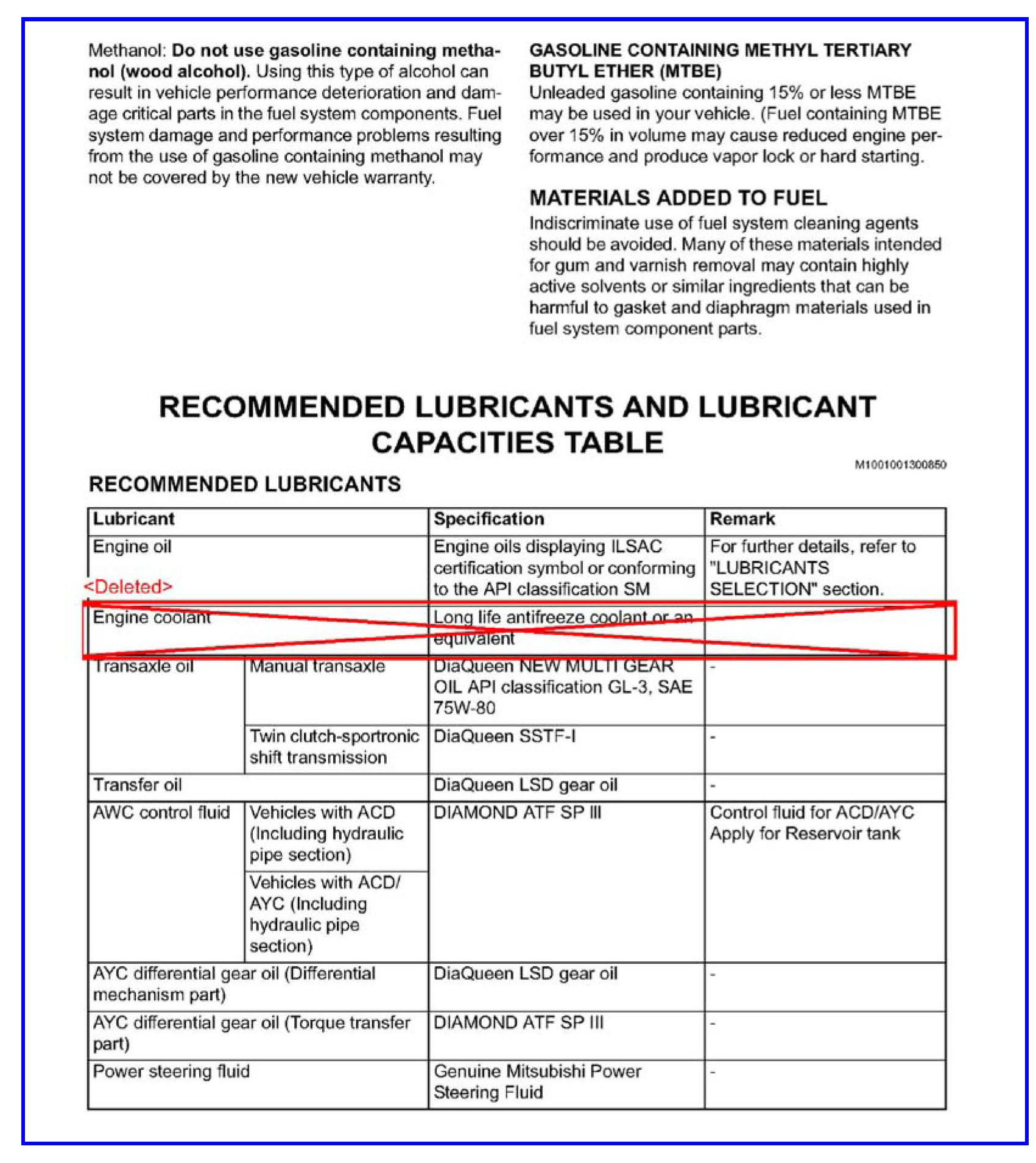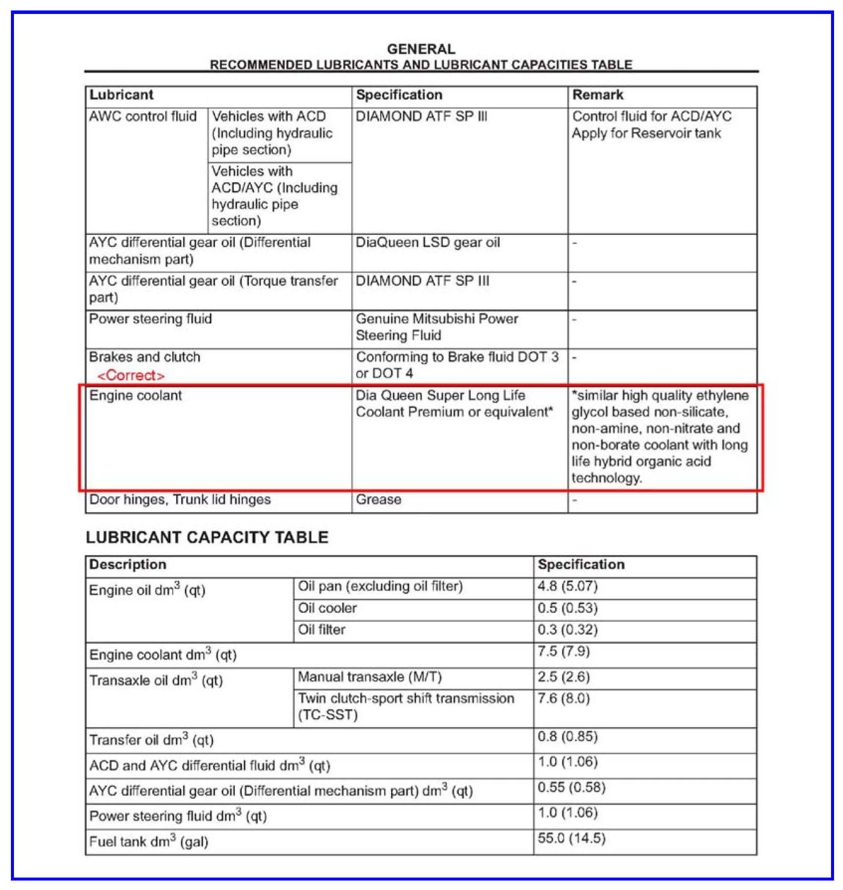 2011 Lancer Evolution, Group 00 - General: Recommended Lubricants & Lubricant Capacities Table