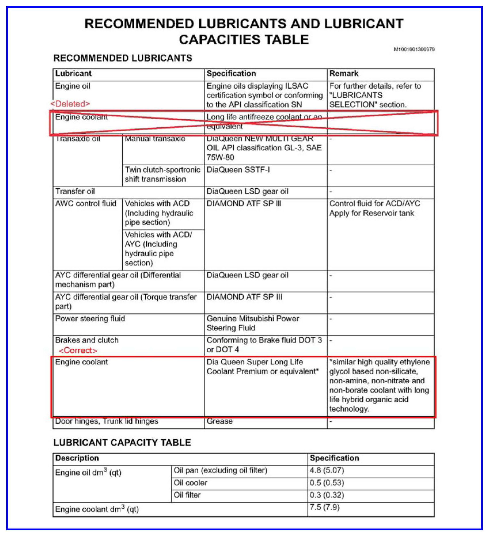 SPECIFIED COOLANT RECOMMENDATION UPDATE