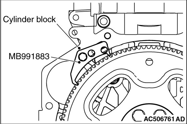 3. Use special tool MB991883 to secure the flywheel assembly in the same manner as removal.