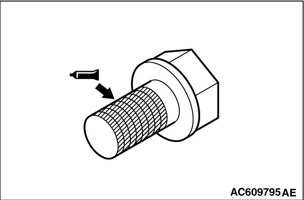 4. Apply a small amount of engine oil to the bearing surfaces of flywheel bolts and crankshaft tapped hole, and apply the sealant to the bolt threads of flywheel.