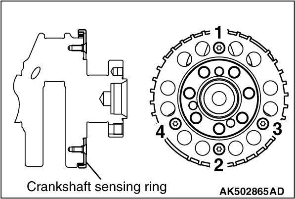 Tighten crankshaft sensing ring bolts to the specified torque in the tightening order shown in the illustration.