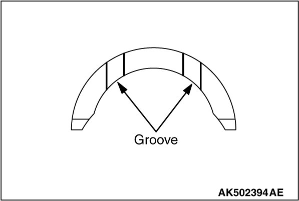 2. Install the thrust bearing so that the grooved side is on the crankshaft weight side.