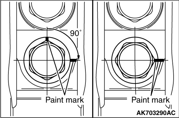 Turn each bolt 90° in the tightening sequence specified in step 1, and make sure that the paint marks on the bolt and cap are aligned.