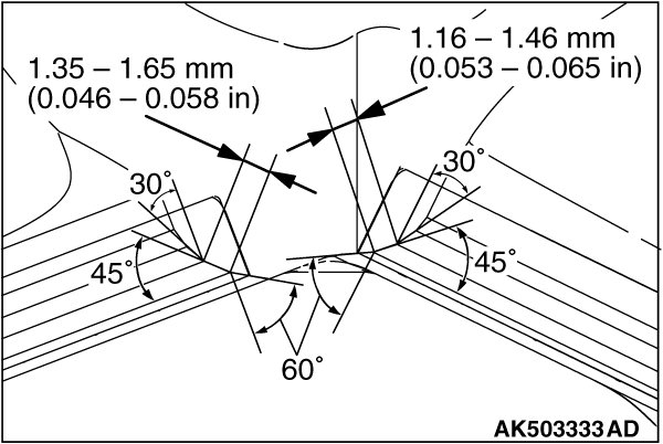 If the variation in the width exceeds 0.2 mm (0.01 inch) even if the contact width is within the standard value, replace or correct the valve seat.