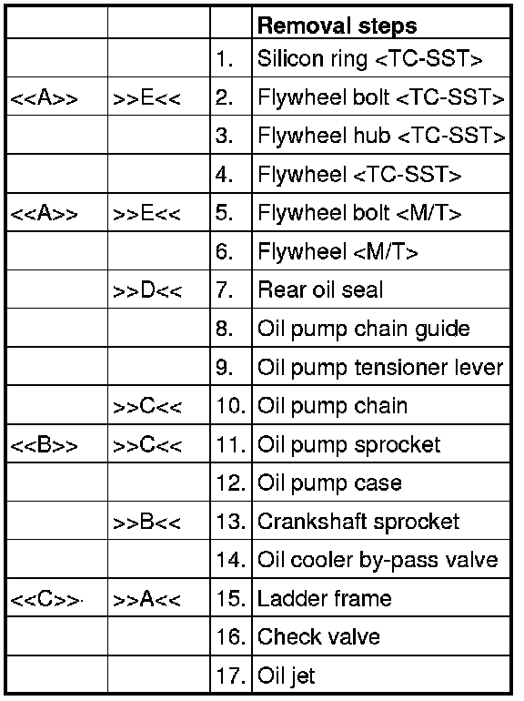 Completely remove liquid gasket adhering to the cylinder block, ladder frame and rear oil seal case.