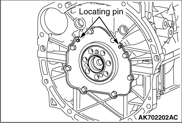 5. Install the rear oil seal case aligned with the locating pin and tighten it to the specified torque.