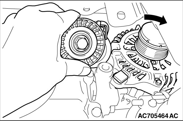 Loosen the mounting bolt of generator assembly lower part, and remove the mounting bolt of generator assembly upper part. Slide the generator assembly, and remove the auto-tensioner.