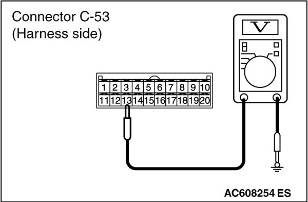 (1)Disconnect heater control module connector C-53 and measure the voltage at the harness side.