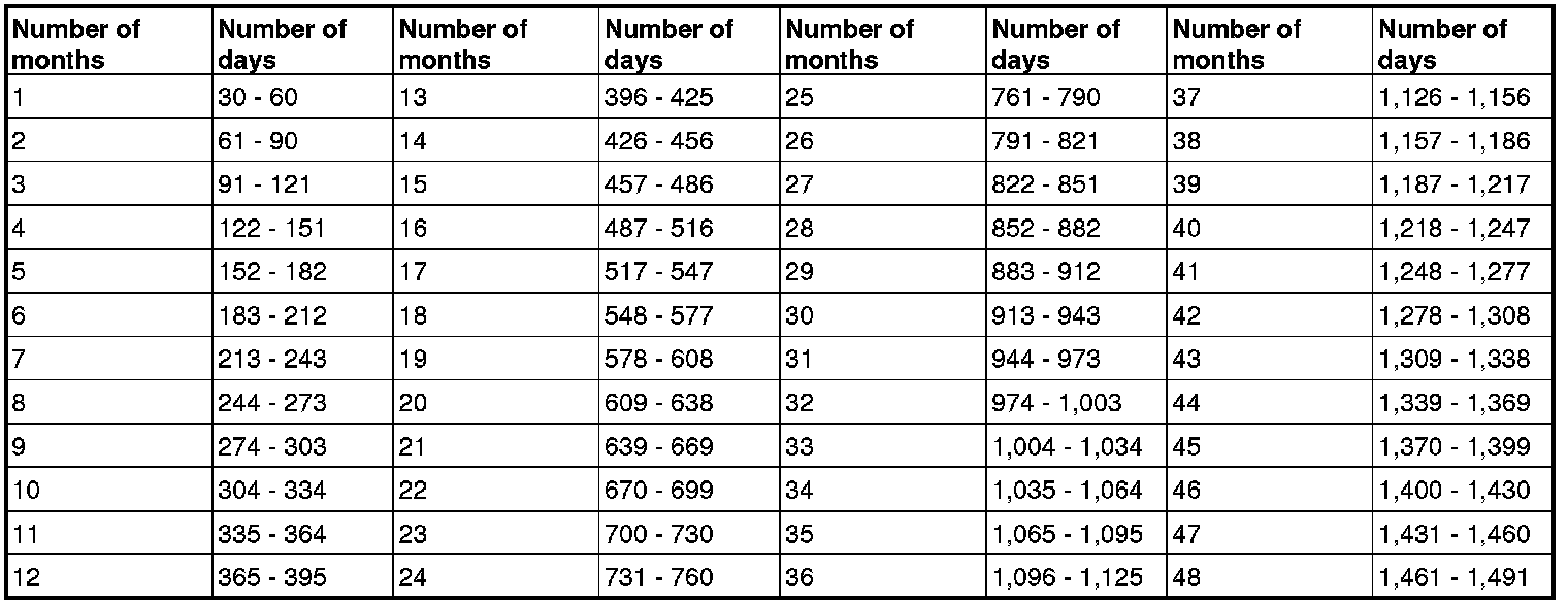 - When the number of elapsed days is 0 to 29, the number of elapsed months is 0.