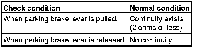 2. Check for continuity between the parking brake switch terminal and the switch mounting bolt.