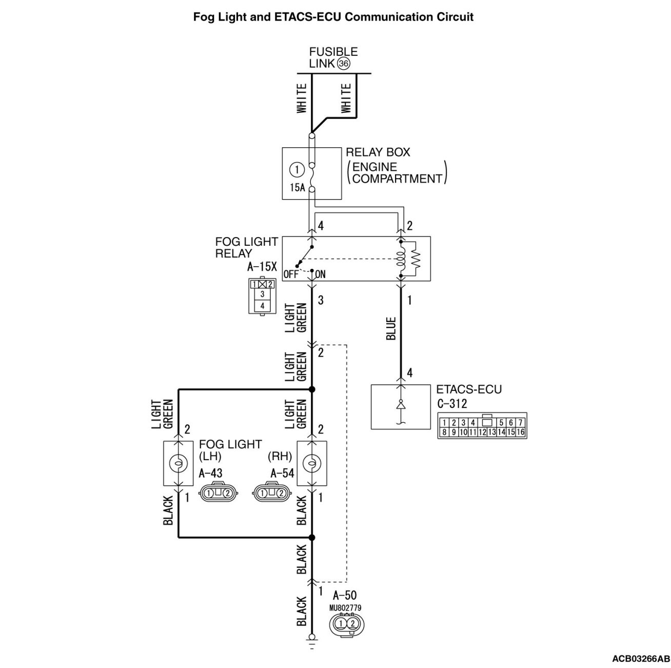 When none of the front fog lights illuminates, the input signal circuit(s) below or the ETACS-ECU may be defective.