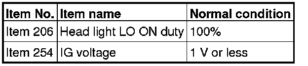 Q. Does scan tool MB991958 display the items "Head light LO ON duty", "IG voltage" and "Dr door ajar switch" as normal condition?