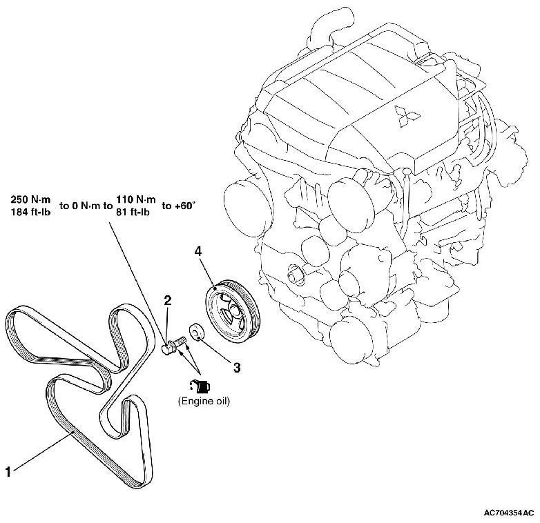 (3) Tighten the crankshaft pulley center bolt to the specified torque 110 Nm