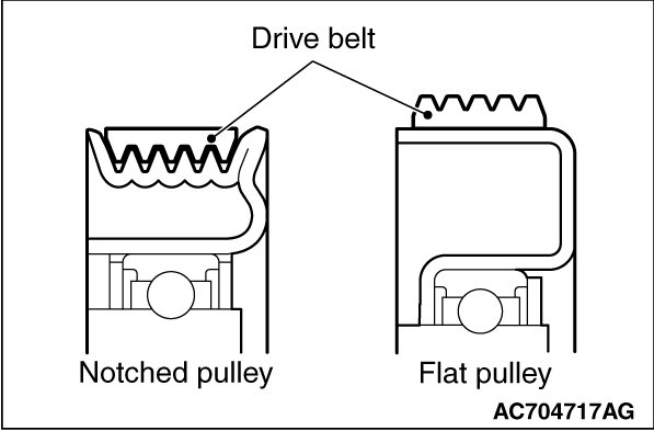 - Check that the drive belt is installed in the center of the flat surface of the flat pulley.
