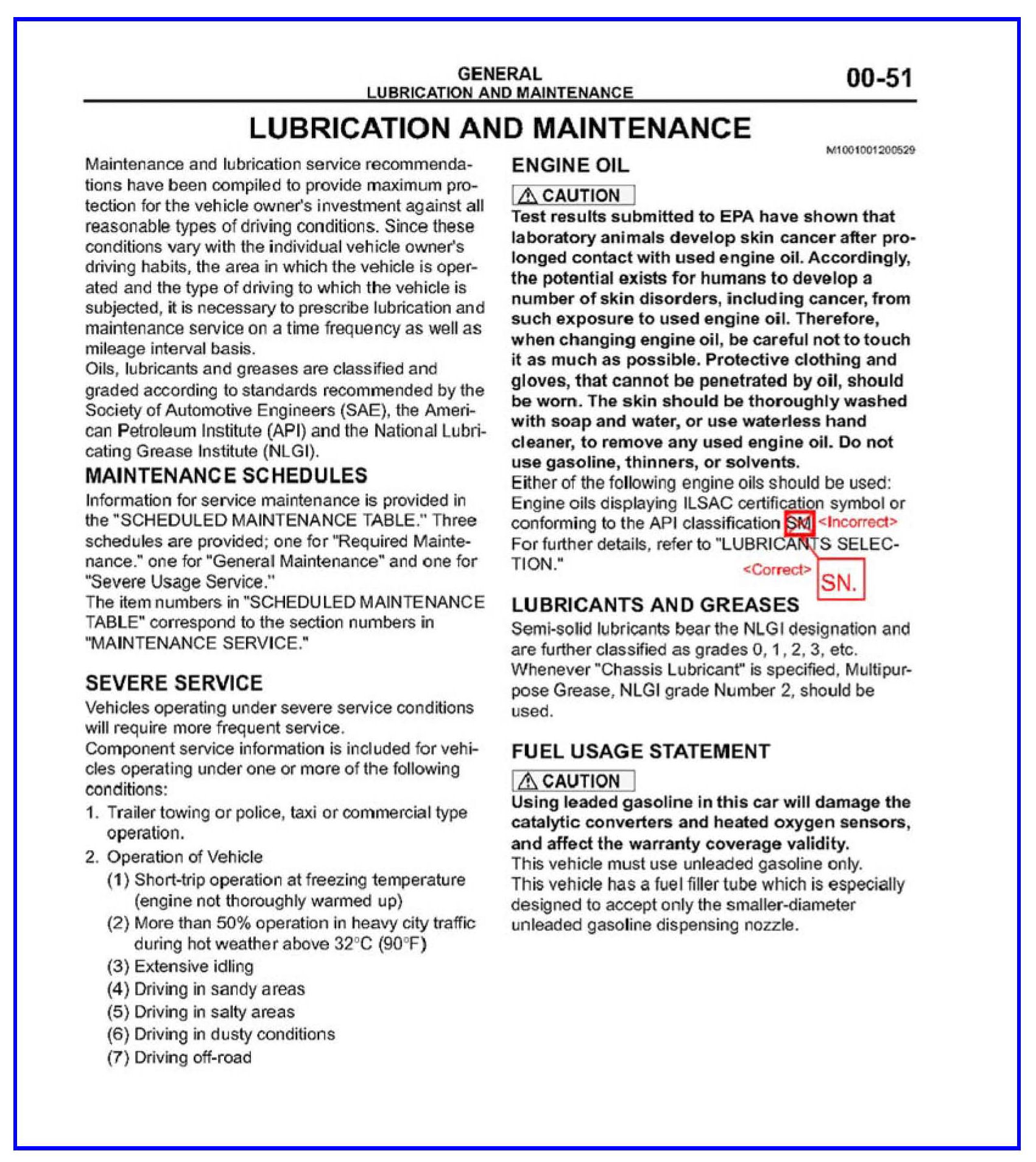 This TSB revises maintenance schedules and engine oil grades in the applicable service manual.