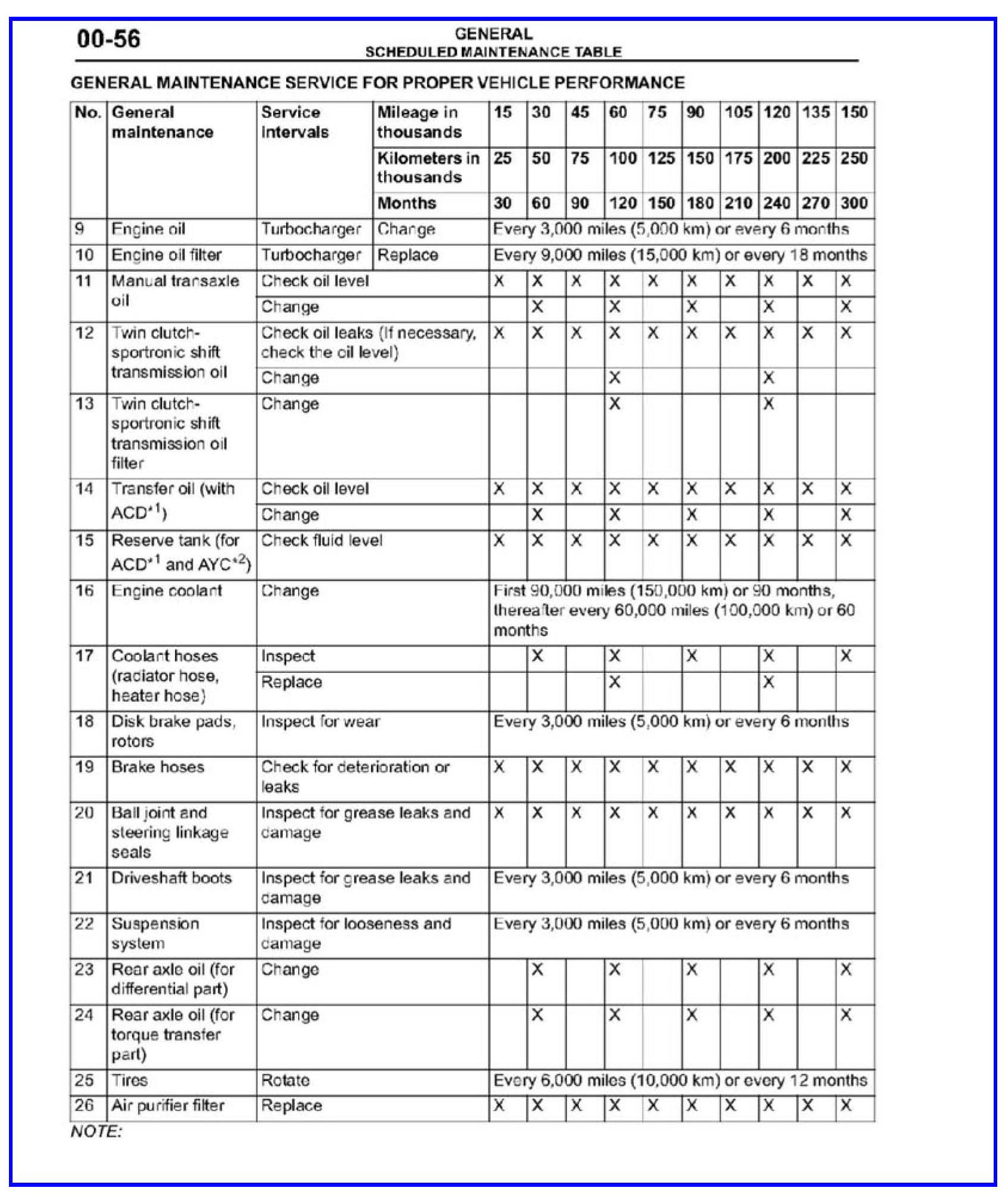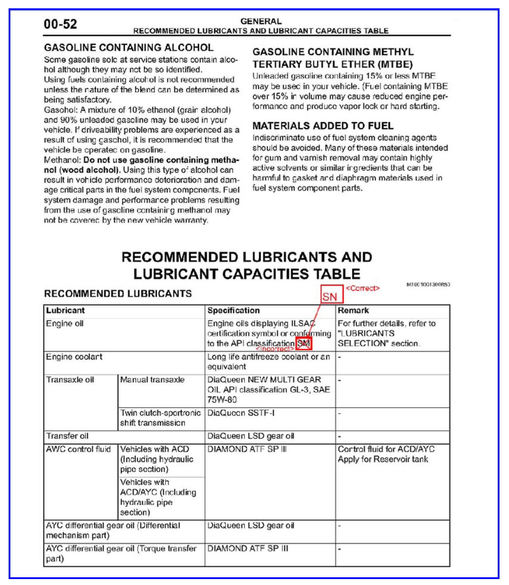 Make the indicated changes in the 2012 Lancer Evolution Service Manual Group 00-General Lubrication and Maintenance