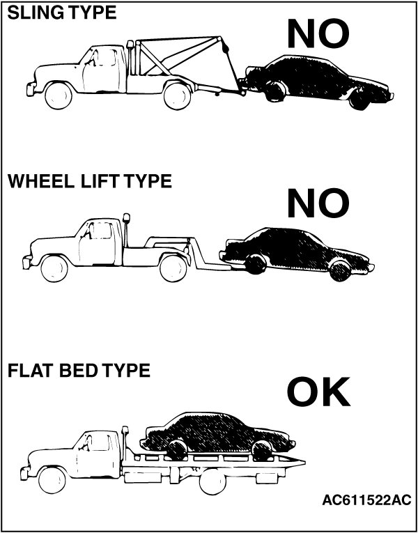 - If this vehicle is towed, use flat bed equipment
