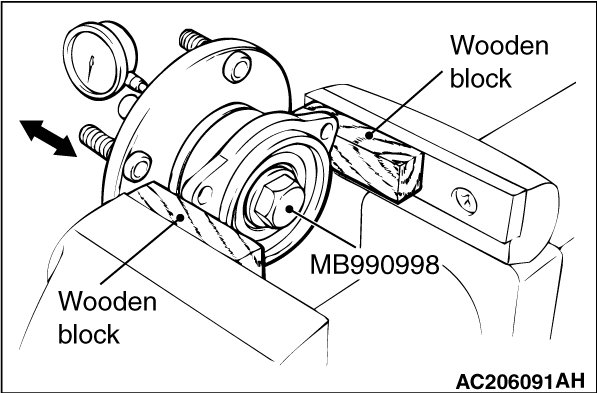 6. Measure to determine whether the wheel bearing end play is within the specified limit or not.