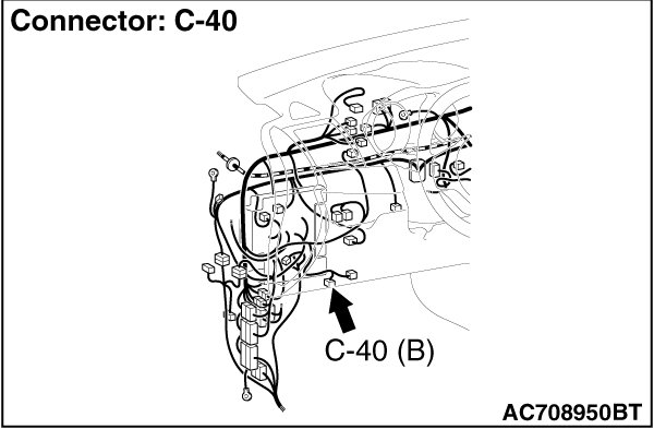 STEP 1. Check data link connector C-40 and ETACS-ECU connector C-301 for loose, corroded or damaged terminals, or terminals pushed back in the connector.