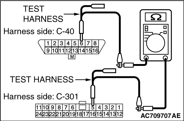 (1)Disconnect the scan tool and ETACS-ECU connector C-301, and measure the resistance at the wiring harness side of data link connector C-40.