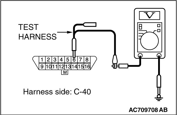 STEP 4. Check the wiring harness between data link connector C-40 and ETACS-ECU connector C-301 for a short to the power supply. Measure the voltage at data link connector C-40.