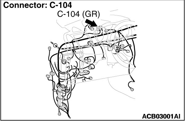 STEP 1. Check joint connector (CAN2) C-104 and ETACS-ECU connector C-301 for loose, corroded or damaged terminals, or terminals pushed back in the connector.