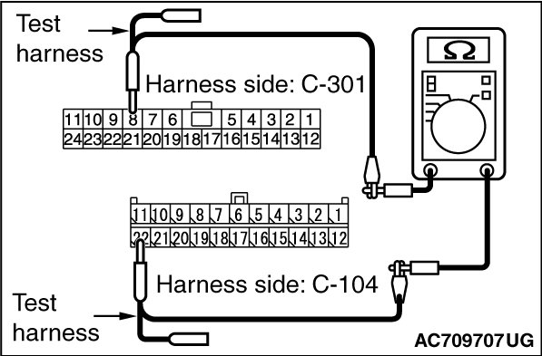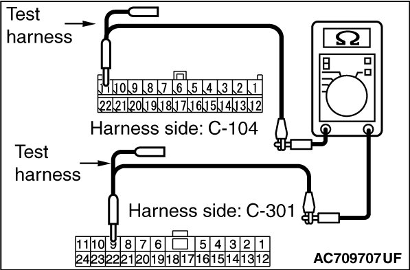 (1)Disconnect joint connector (CAN2) C-104 and ETACS-ECU connector C-301, and check the wiring harness.