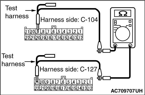 STEP 2. Check the wiring harness between joint connector (CAN2) C-104 and joint connector (CAN3) C-127 for open circuit.