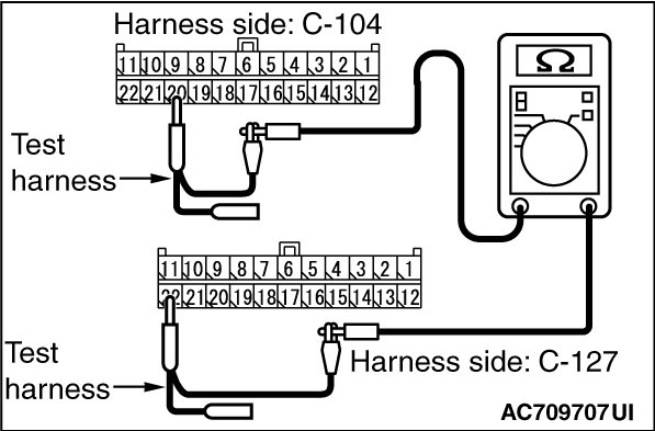 (3)Check the wiring harness between joint connector (CAN2) C-104 (terminal 20) and joint connector (CAN3) C-127 (terminal 22)