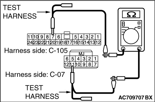 STEP 2. Check the wiring harness between joint connector (CAN1) C-105 and WCM connector C-07 for open circuit.