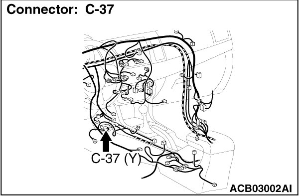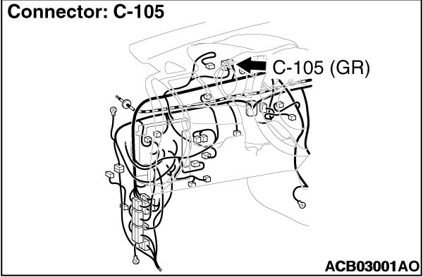 STEP 1. Check joint connector (CAN1) C-105 and SRS-ECU connector C-37 for loose, corroded or damaged terminals, or terminals pushed back in the connector.