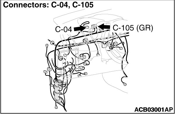 STEP 2. Check the wiring harness between joint connector (CAN1) C-105 and combination meter connector C-04.
