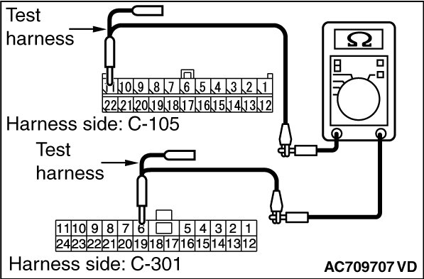 (3)Check the wiring harness between joint connector (CAN1) C-105 (terminal 22) and ETACS-ECU connector C-301 (terminal 7)