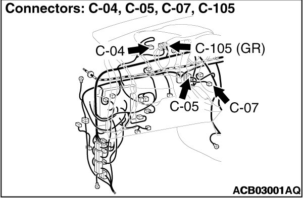 (1)Disconnect ETACS-ECU connector C-301, and check that there is continuity at the harness side of ETACS-ECU.