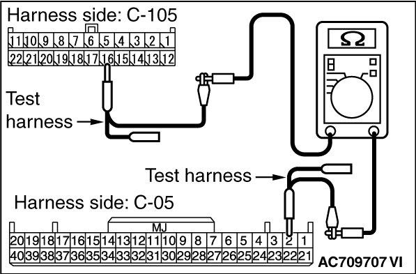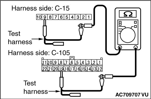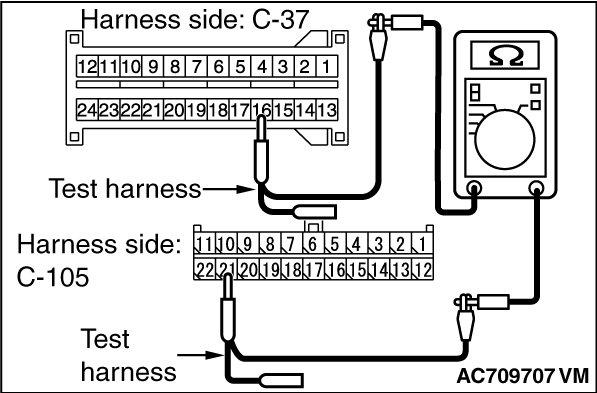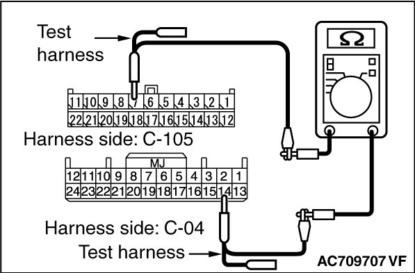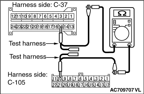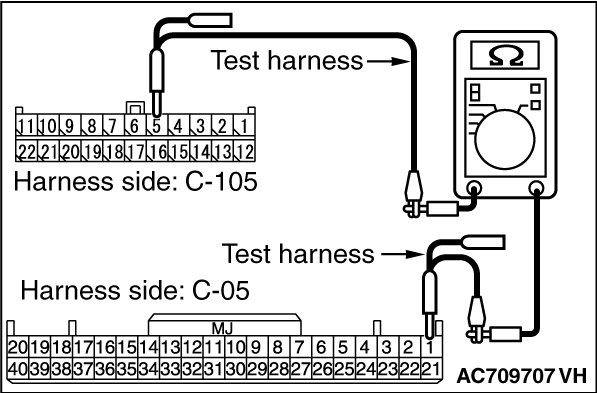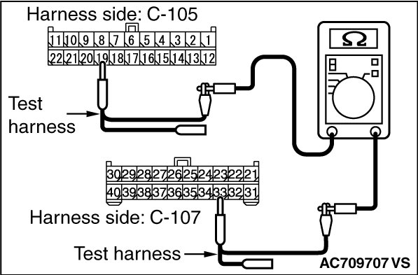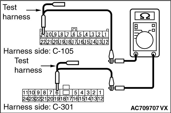 (1)Disconnect joint connector (CAN1) C-105 and ETACS-ECU connector C-301, and check the wiring harness.
