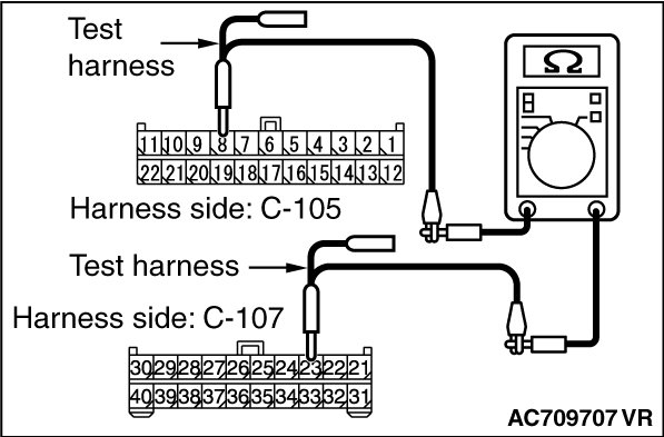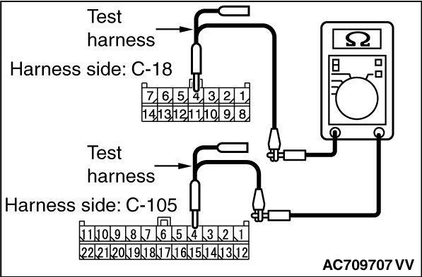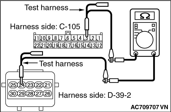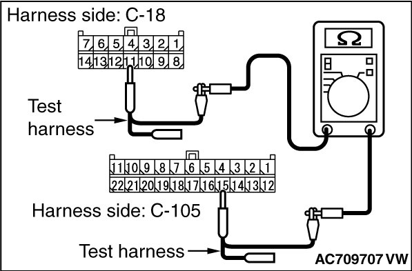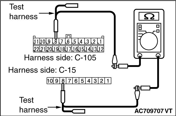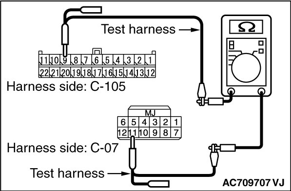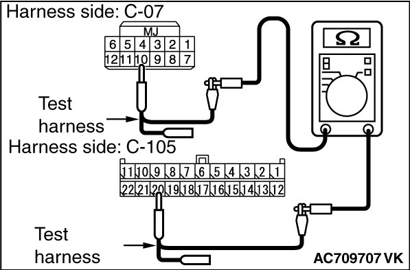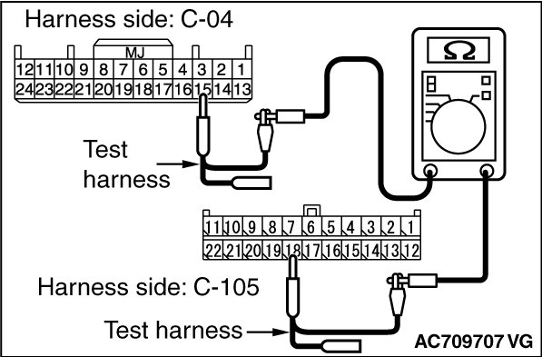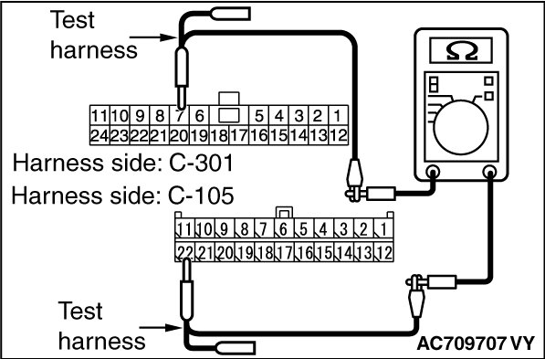 (3)Check the wiring harness between joint connector (CAN1) C-105 (terminal 22) and ETACS-ECU connector C-301 (terminal 7)