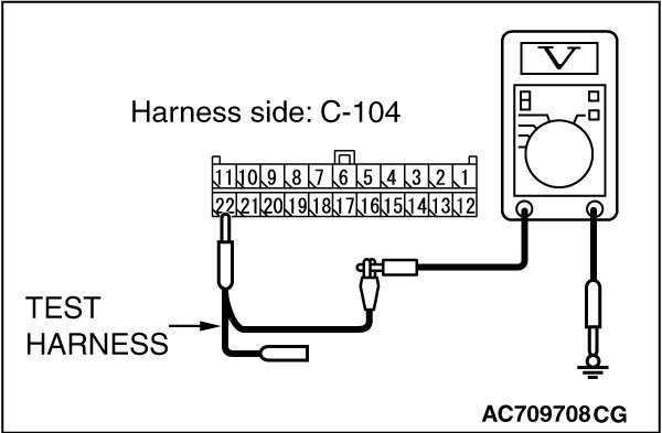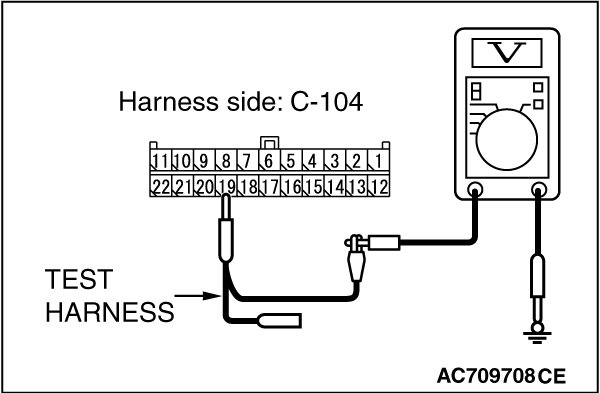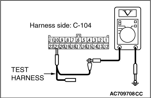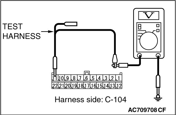 STEP 3. Check the wiring harness between joint connector (CAN2) C-104 and ETACS-ECU connector C-301 for a short to power supply. Measure the voltage at joint connector (CAN2) C-104.