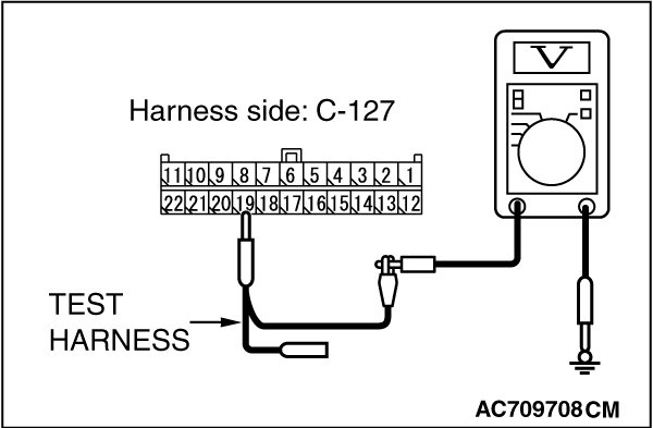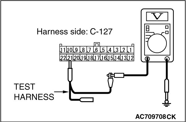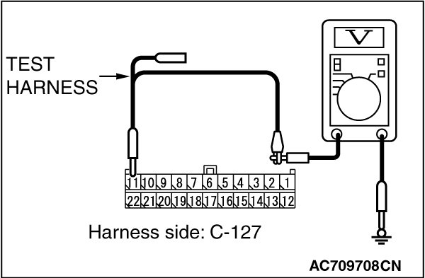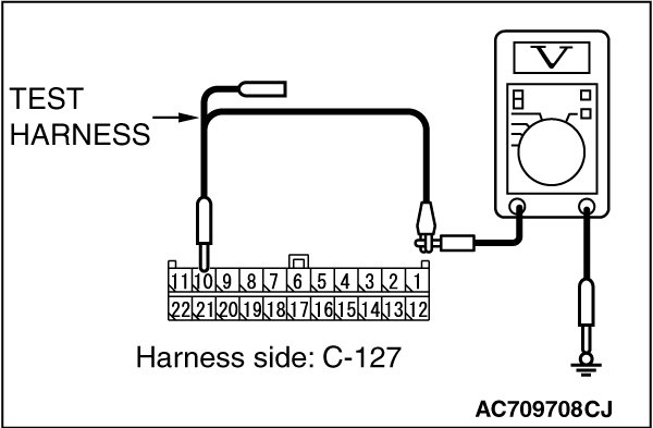 STEP 5. Check the wiring harness between joint connector (CAN3) C-127 and ECM connector B-10 [M/T] for a short to power supply. Measure the voltage at joint connector (CAN3) C-127.