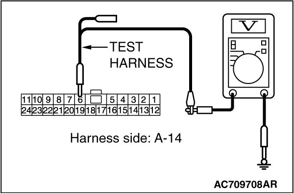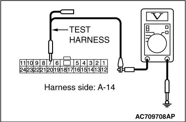STEP 7. Check the wiring harness between joint connector (CAN4) A-14 and ECM connector B-10 [TC-SST] for a short to power supply. Measure the voltage at joint connector (CAN4) A-14.
