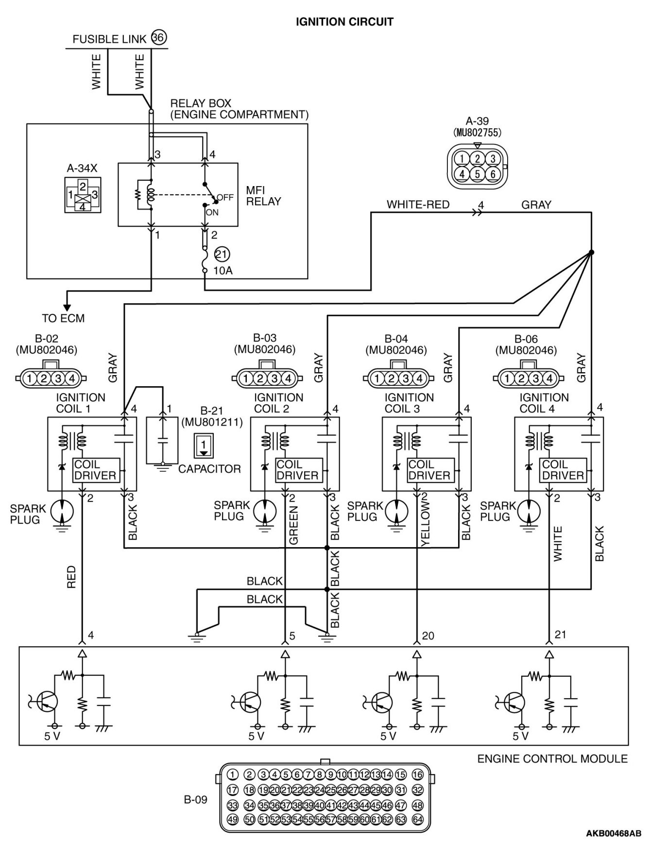 - A power voltage of 5 V is applied to the ignition coil (terminal No. 2) from the ECM (terminal No. 4, No. 5, No. 20 and No. 21).