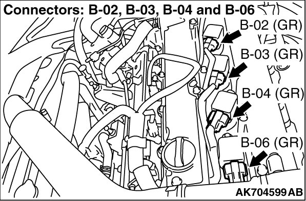 STEP 4. Check the circuit at ignition coil harness side connector B-02, B-03, B-04 and B-06.