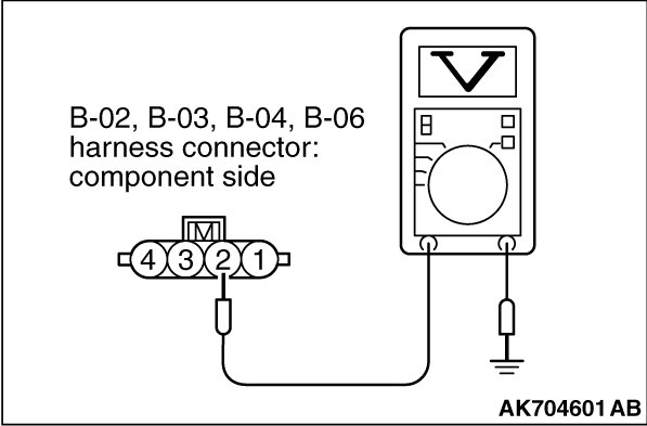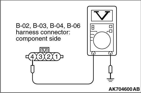 STEP 3. Measure the power supply voltage at ignition coil connectors B-02, B-03, B-04 and B-06.