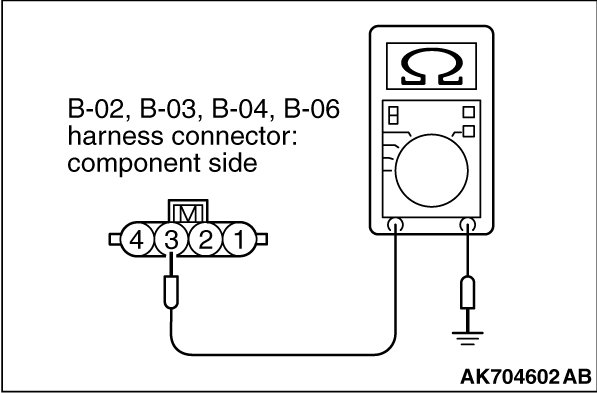STEP 7. Check for continuity at ignition coil harness side connector B-02, B-03, B-04 and B-06.