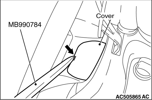 Insert Special tool MB990784 into the notch shown in the figure, and remove the cover.