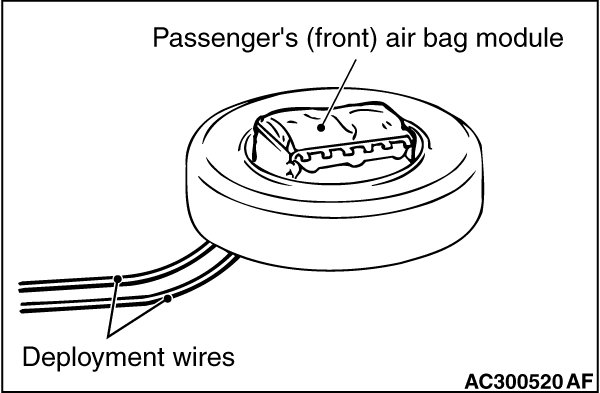 Once disconnected, both electrodes of the passenger's (front) air bag module connector short automatically to prevent accidental deployment caused by static etc. Still, in consideration of possible accidental deployment, store the air bag module on flat place with deployment surface facing up. Do not put anything on it.