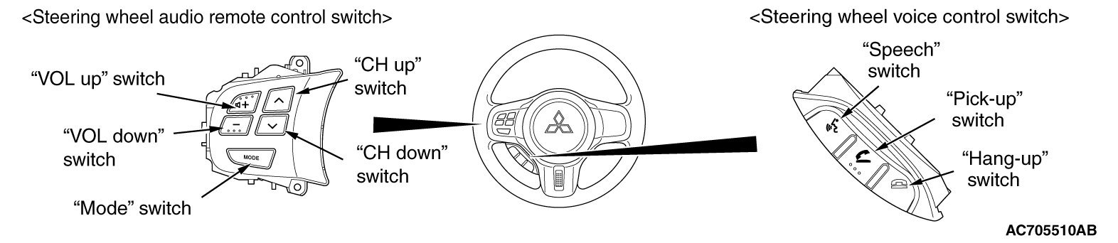 With the steering wheel voice control switch, the hands free interface system can be operated.(Refer to Description and Operation.)