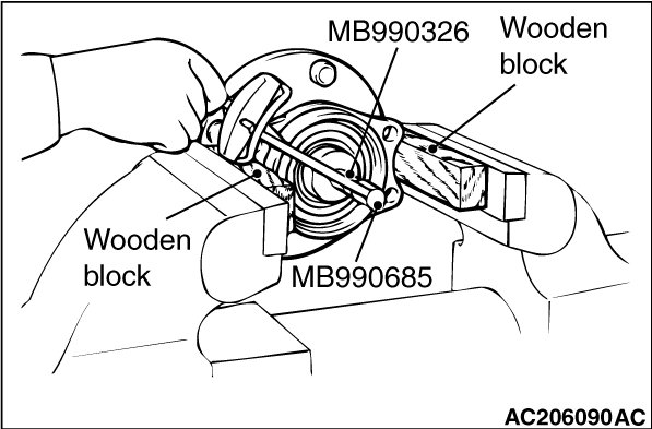 4. Measure the wheel bearing rotation starting torque by using special tools MB990326 and MB990685.