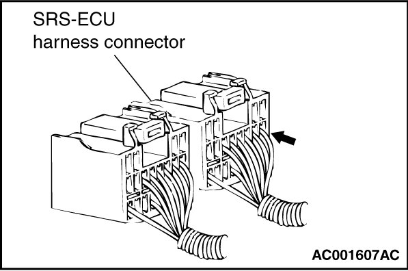 Since the SRS-ECU harness connector is plated to improve conductivity, observe the warning below when checking this connector.